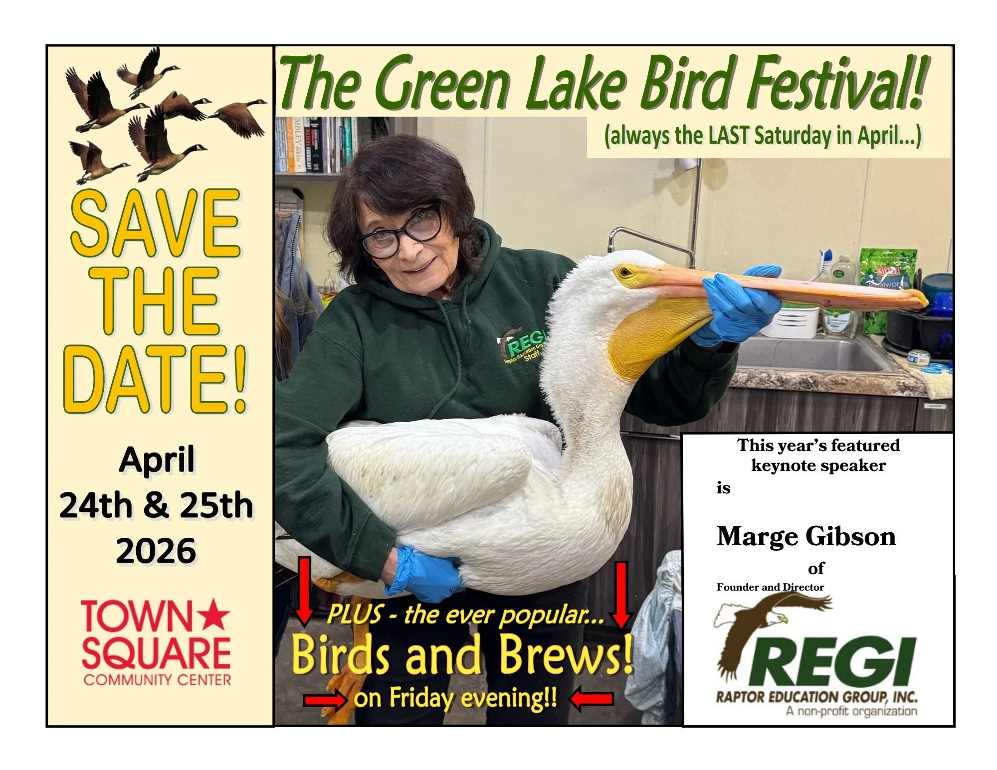 The festival begins Friday evening with “Birds and Brews” from 5:30–7:00 pm in the Town Square Ballroom. Enjoy snacks, beverages, raffle items, and time to connect with fellow bird enthusiasts.