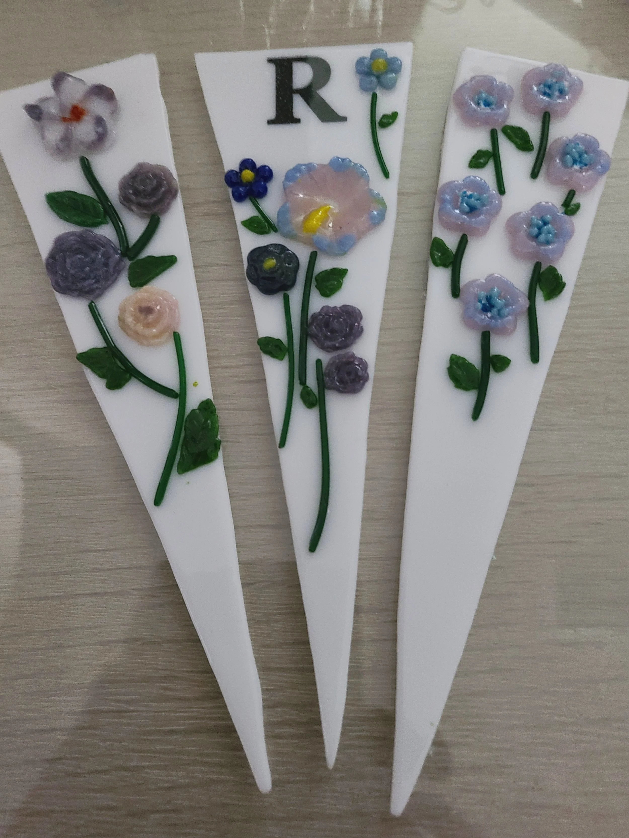 Add beauty to your garden or plants by making 3 stakes with designs of your choice.