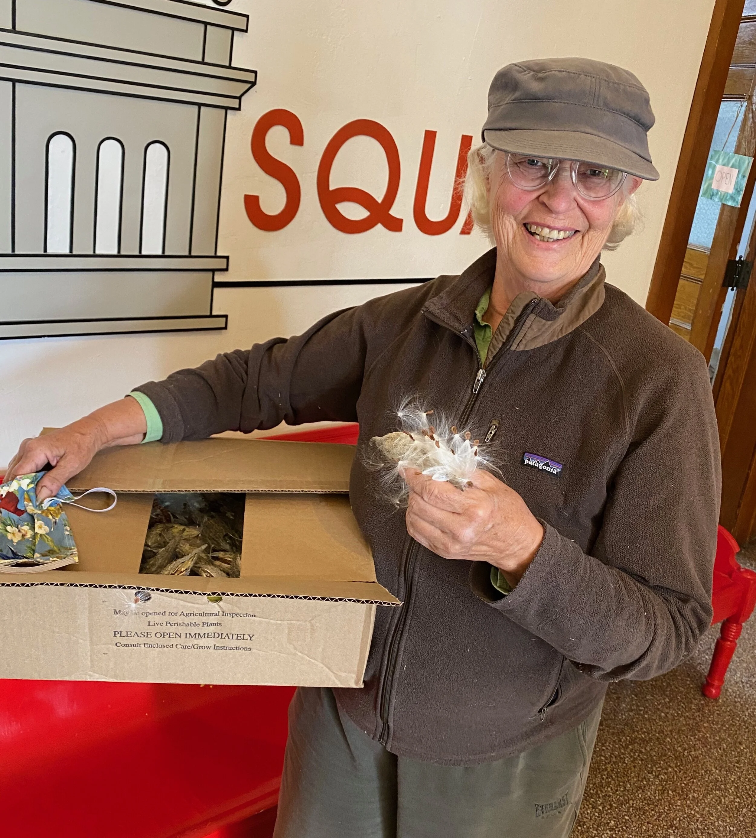 Sandy Blank, our friend and local resident stopped by today with a box of milkweed pods hoping the community will take some to plant this fall. Anyone can pick pods up at the Town Square lobby during business hours.
